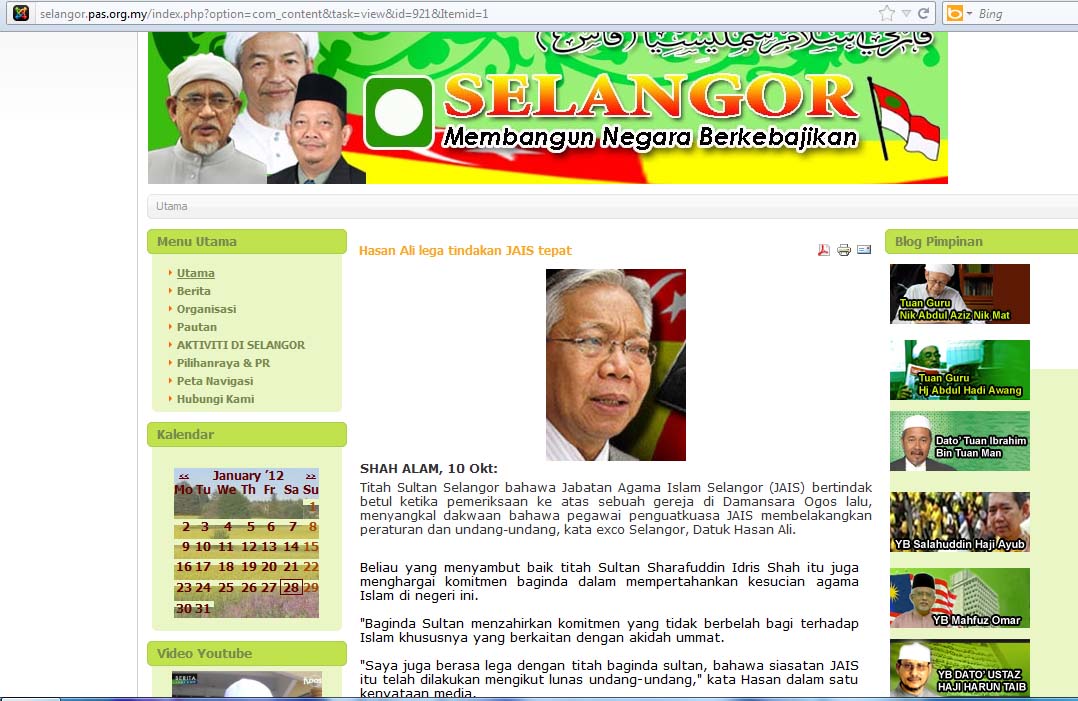 Just last year, Dr Hasan Ali, a PAS VP, defended the actions of the Selangor Religious Department (JAIS) raiding the Damansara Utama Methodist Church for an attempt to proselytize Muslims. The full report submitted by JAIS has never been brought forth by the Menteri Besar, but His Royal Highness the Sultan of Selangor decreed that JAIS’s action was right and lawful, hence underscoring the dangers of proselytizing of Muslims by Evangelists. This was carried in PAS Selangor’s website. Yet, three months after this story was carried by the party’s state organ, Dr Hasan Ali was expelled from PAS for not toeing party line, or not following the spirit of Selangor’s Pakatan Rakyat.