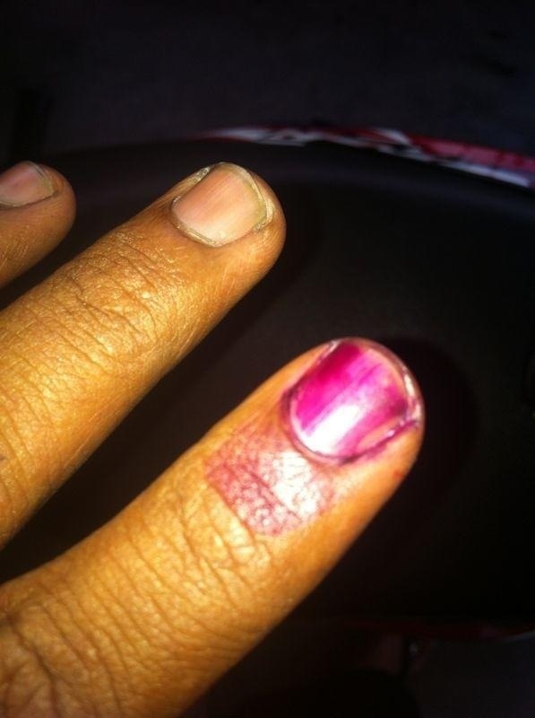 Barely four hours have lapsed since the final postal vote was cast when photos of “disappearing indelible ink” rode the Internet waves, and accusations started flying. This could be pre-empting the outcome of the final ballot count come 5th May. Let me show you the pictures taken by a fellow blogger Hazrey of the finger of a personnel from the Johor Bahru Police Contingent HQ who cast his votes this morning, marked with the indelible ink: