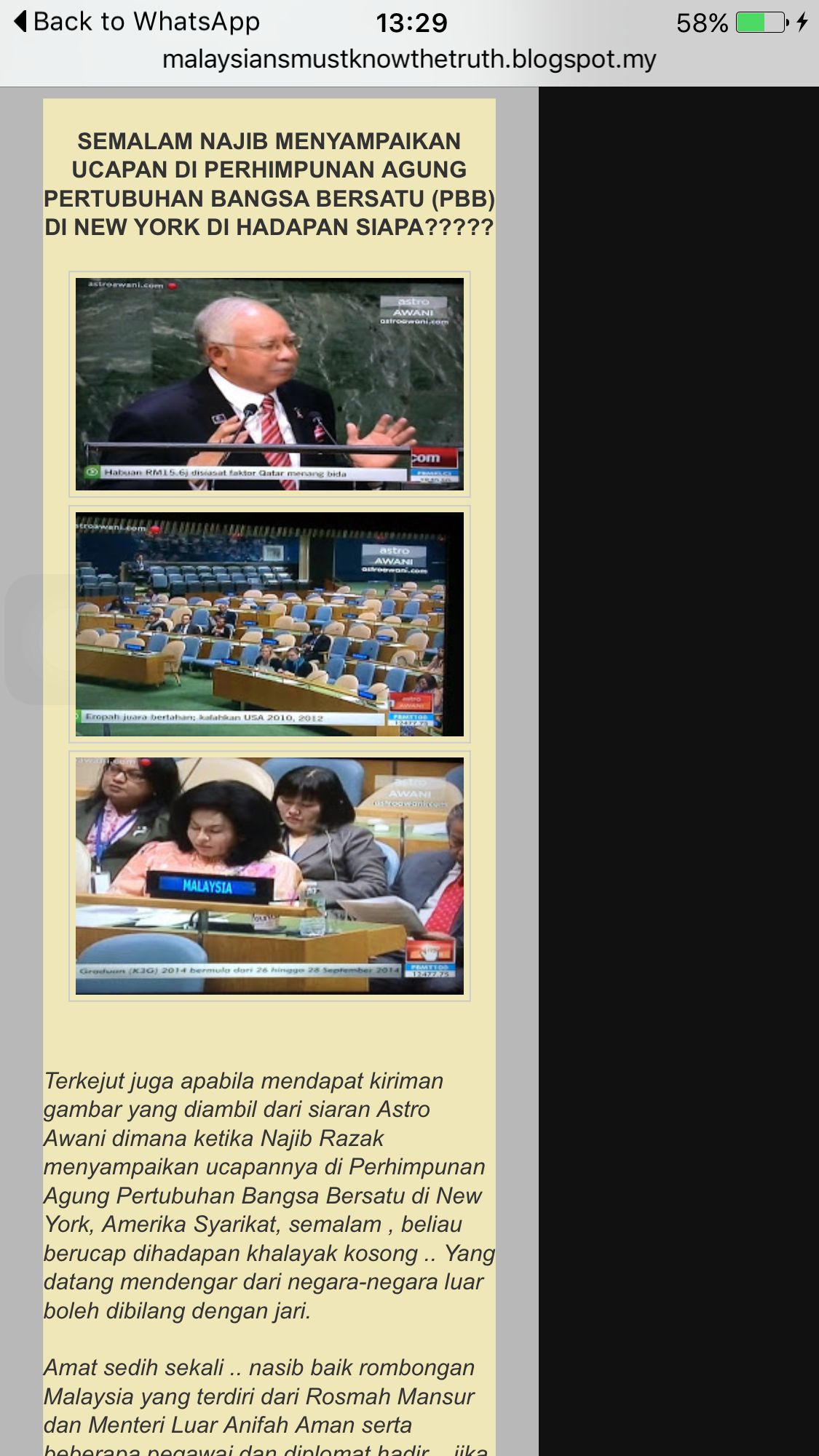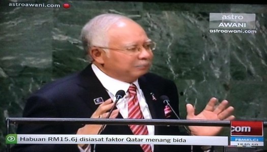 Najib is only scheduled to deliver his speech at the UNGA TOMORROW, losers! Not today!