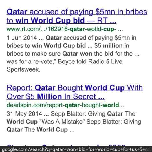 Wait! What’s that on the crawler at the bottom? Qatar investigated for a RM15.6 million bribe? If that amount is divided by 4 to reflect the current exchange rates that would translate into USD 3 point something million. If we use the rates from last year (2014) and take 3 as an exchange rate then it would come to USD 5 million.