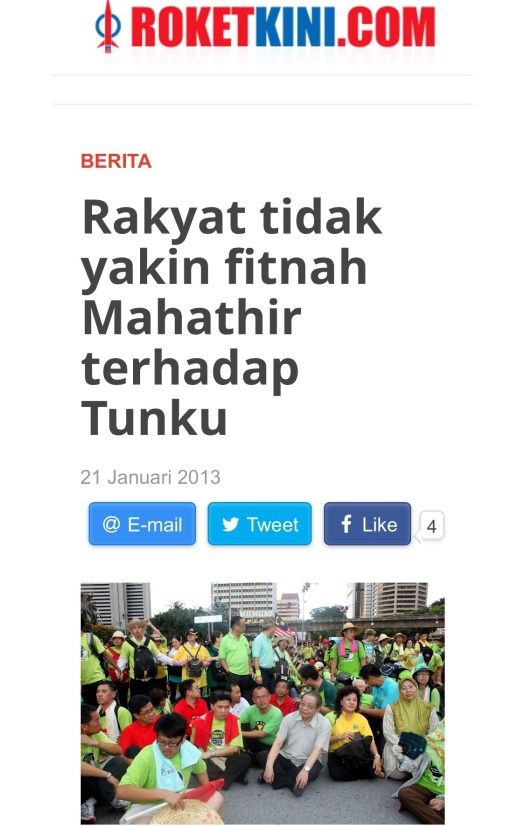 “Persoalannya, bagaimana rakyat Malaysia mahu melihat dasar 1Malaysia Najib sebagai sebuah dasar yang serius bagi menjadikan Malaysia yang lebih berdaya maju, lebih produktif dan lebih berdaya saing apabila usaha pembangunan bangsa bukan saja oleh Tunku Abdul Rahman, juga satu juta warga generasi Merdeka diperkecil malah difitnah seperti yang dilakukan Mahathir.