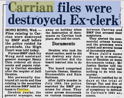A series of loans totalling RM2.5 billion were given by BMF to the Carrian Group beginning 1979 to invest in Hong Kong’s booming property industry.