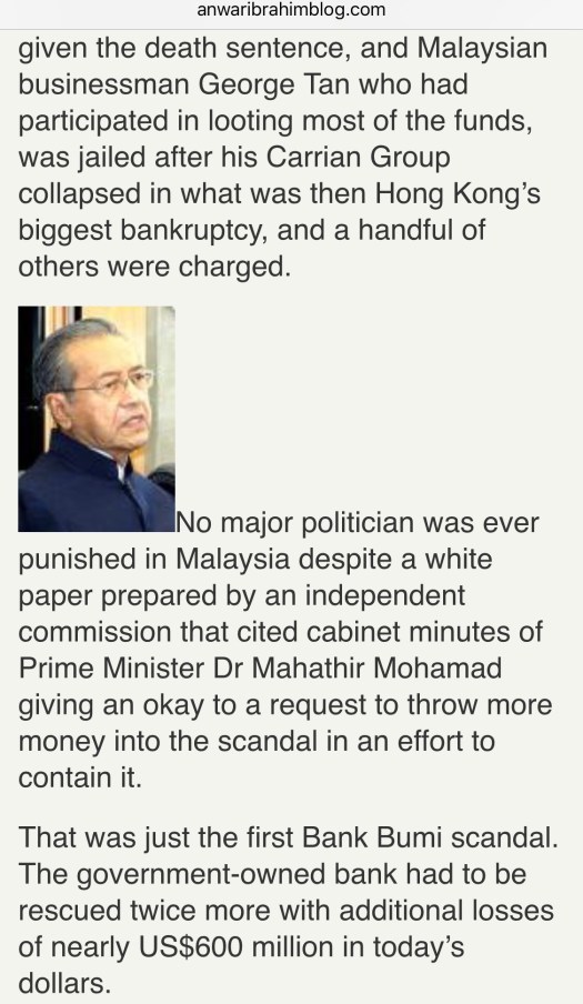 In fact, according to his old new friend Anwar Ibrahim, when the whole deal turned sour about three to four years later, U-Turn Mahathir who was then the Prime Minister even okayed for more money to be thrown into the venture to contain the damage!