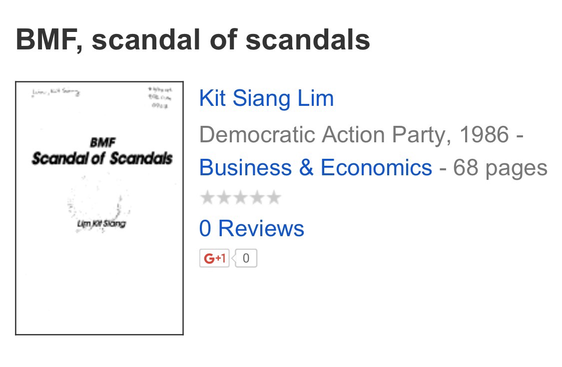 And in the age of the Internet you can find at least ten works of Lim Kit Siang that are related to the BMF scandal.