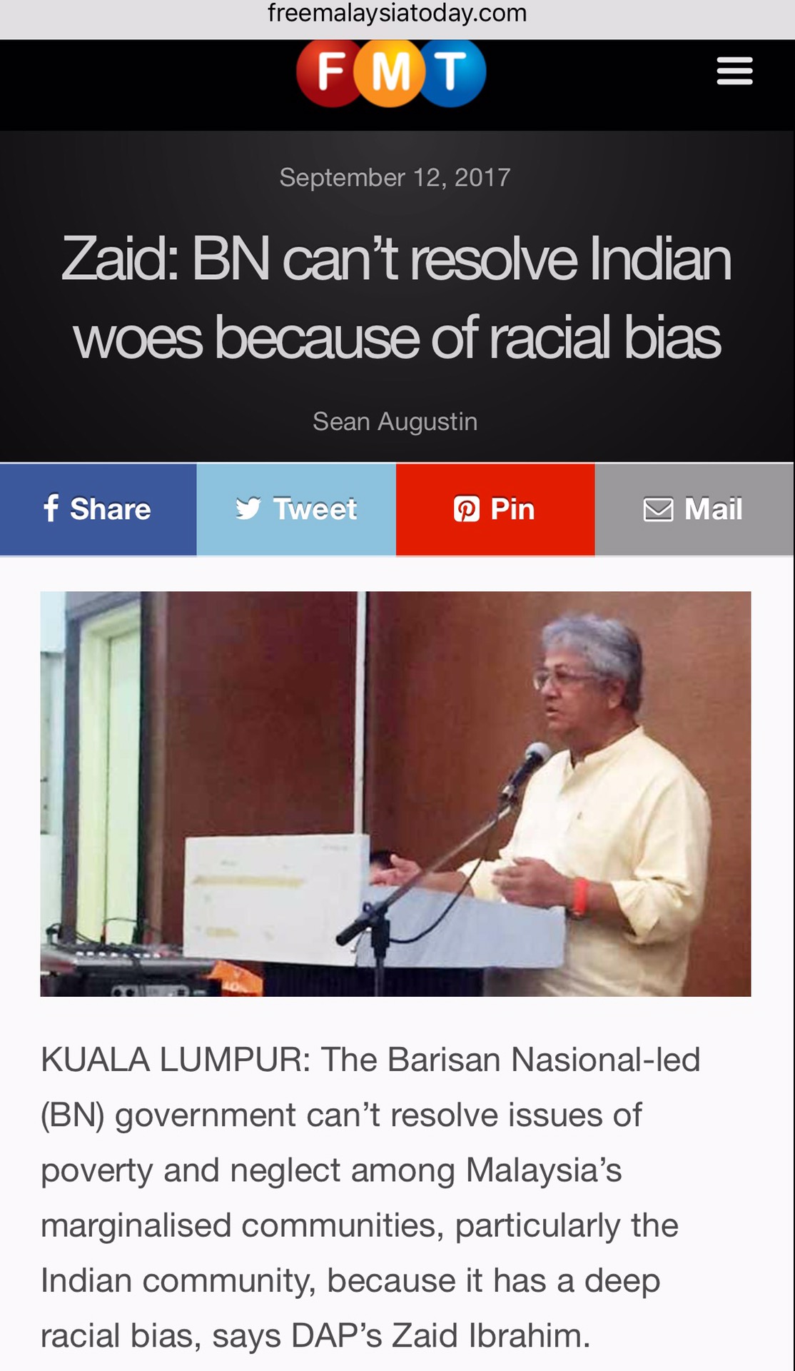 Froggy also told the Indian community that the Barisan Nasional is unable to solve racial problems because it has deep racial bias. This comes from a man whose party marginalised Indians…Kampung Buah Pala et al.