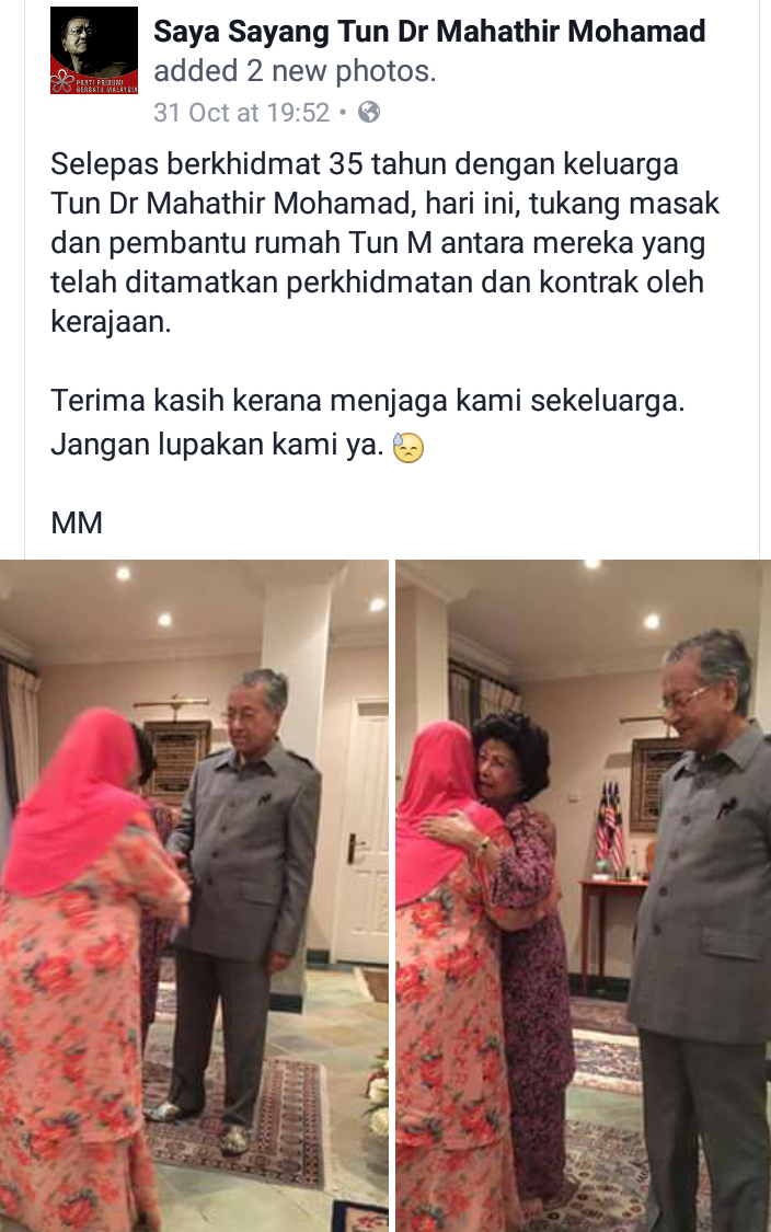 Keluarga Mahathir sebelum ini terpaksa makan rumput yang dicelur dan dicicah dengan sos cili kerana pentadbiran Najib Razak tamatkan perkhidmatan tukang masak dan pembantu rumah mereka setelah 35 tahun berkhidmat.