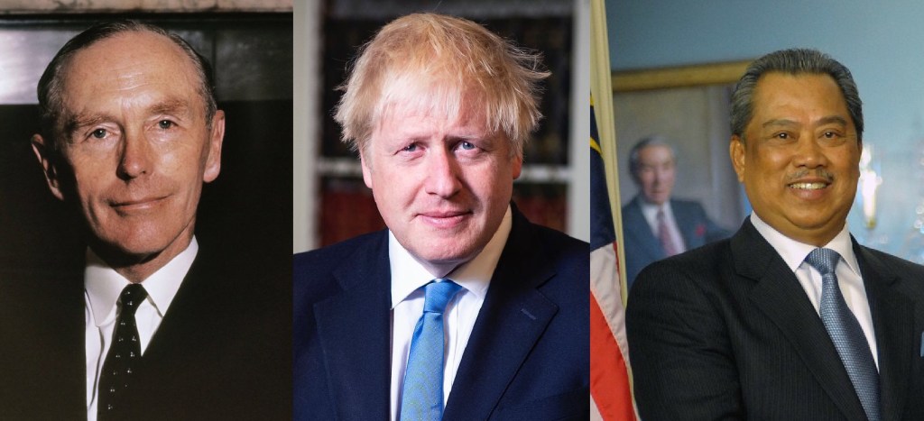 Alec Douglas-Home, Boris Johnson and Muhyiddin Yassin