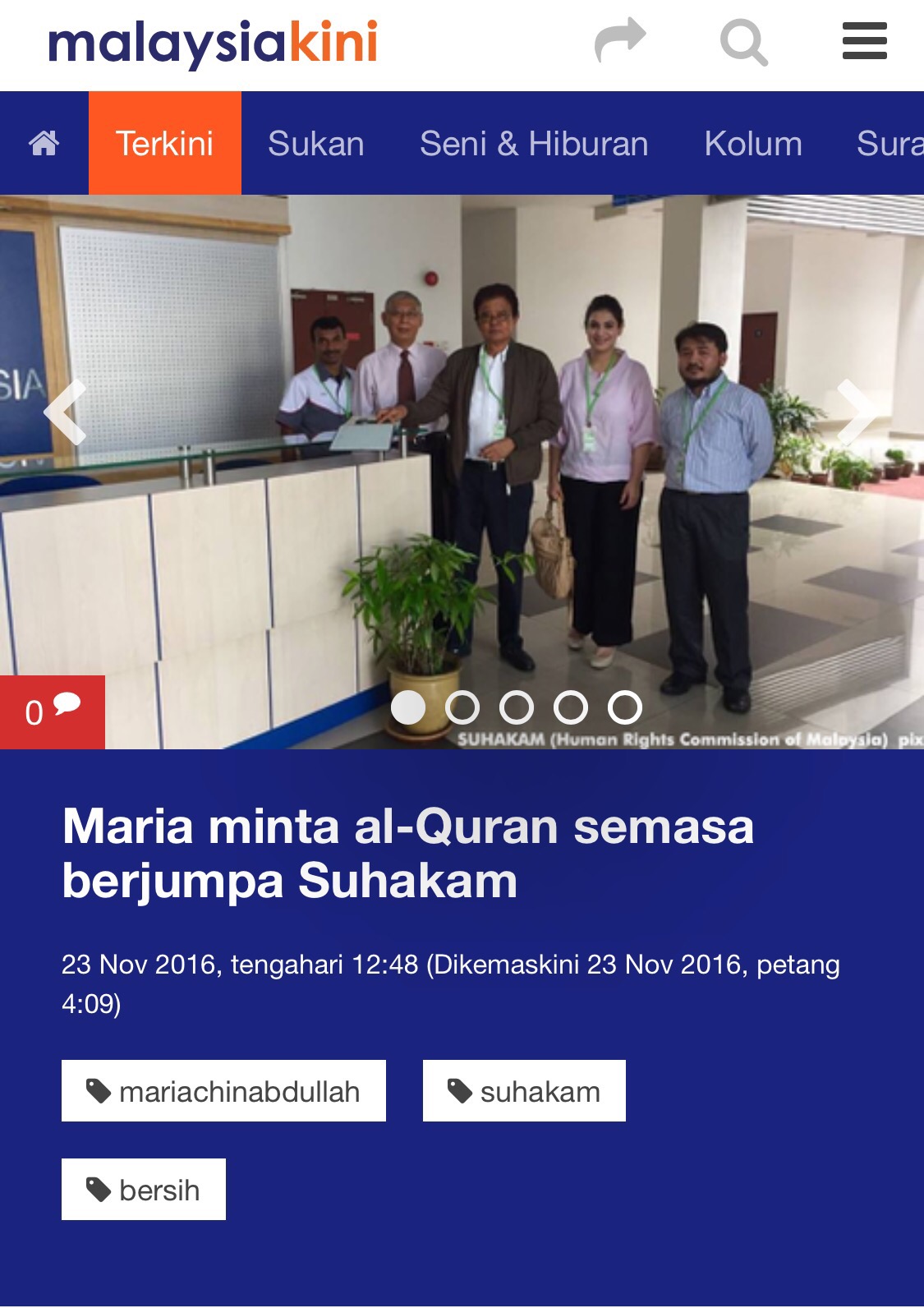 Begitulah Maria Chin Abdullah digambarkan sebagai seorang Muslim yang sejati, termasuk dalam suatu gambar yang menunjukkan beliau membawa sehelai ‘sejadah‘ walaupun tanpa telekung.