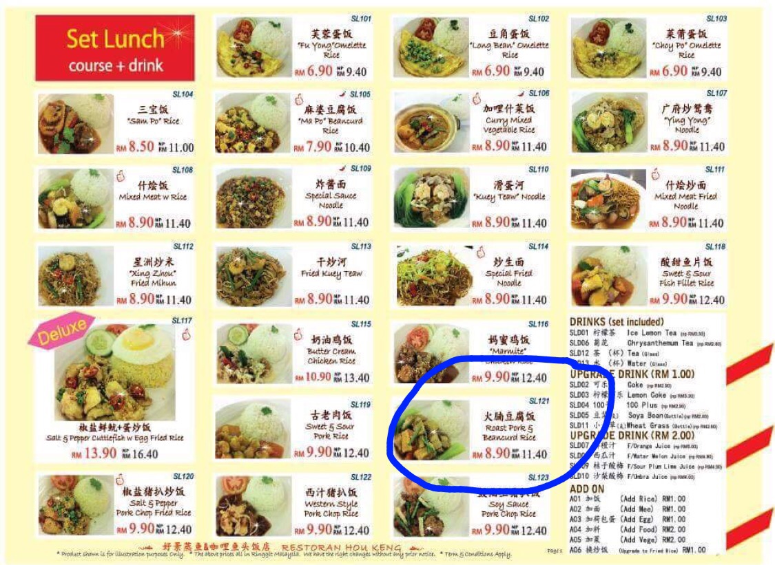 Mungkin disebabkan beliau seorang yang beragama Islam berketurunan Cina maka beliau rindukan masakan Cina. Sudah tentu Restoran Hou Keng ini tidak menyediakan masakan-masakan yang haram, dan berstatus pork-free.