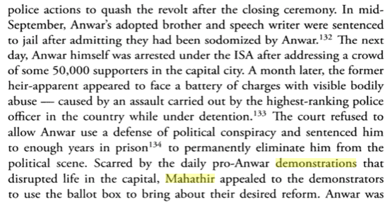You can watch a video to see how Mahathir had Anwar Ibrahim arrested and the way he had the police to handle those who demonstrated against him when he was the Prime Minister.