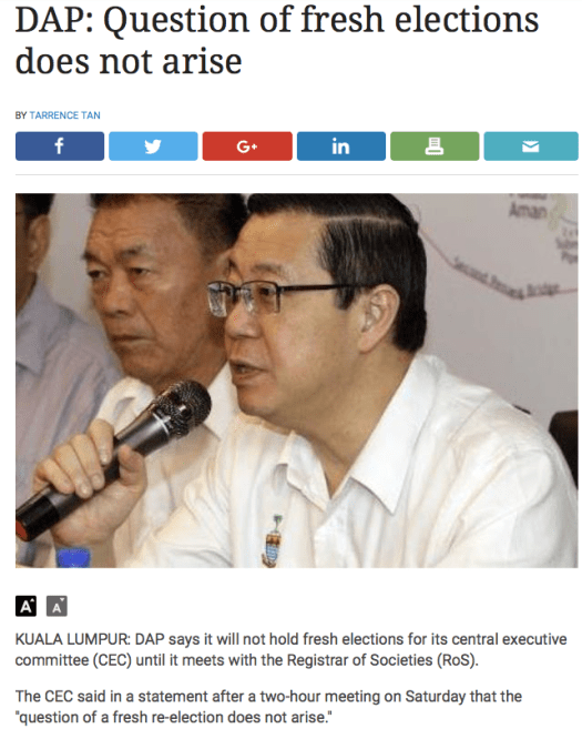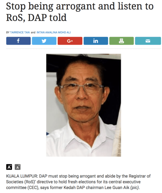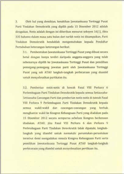 And what has the DAP done to comply with its own party constitution as required by the RoS since then?