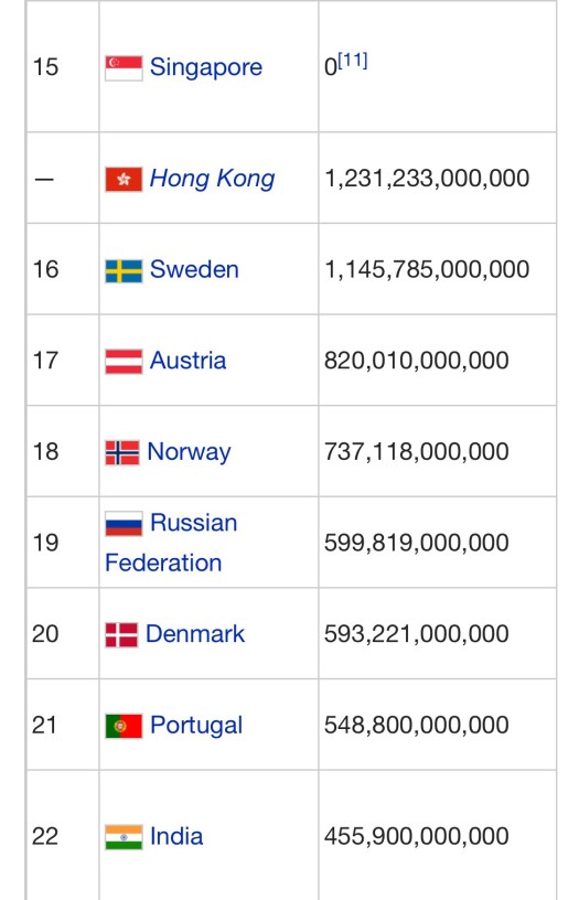 Hong Kong and Singapore are at number 15 also with more than USD 1 Trillion yet I see zombies on Facebook saying why is Singapore doing better than us? Going by Daim’s logic Singaporeans should be in a civil war and mass lootings by now. So, where are we then?