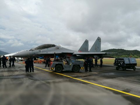 The Royal Malaysian Air Force’s Sukhoi Su-30MKM will be performing solo aerial displays throughout the five-day exhibition in Langkawi