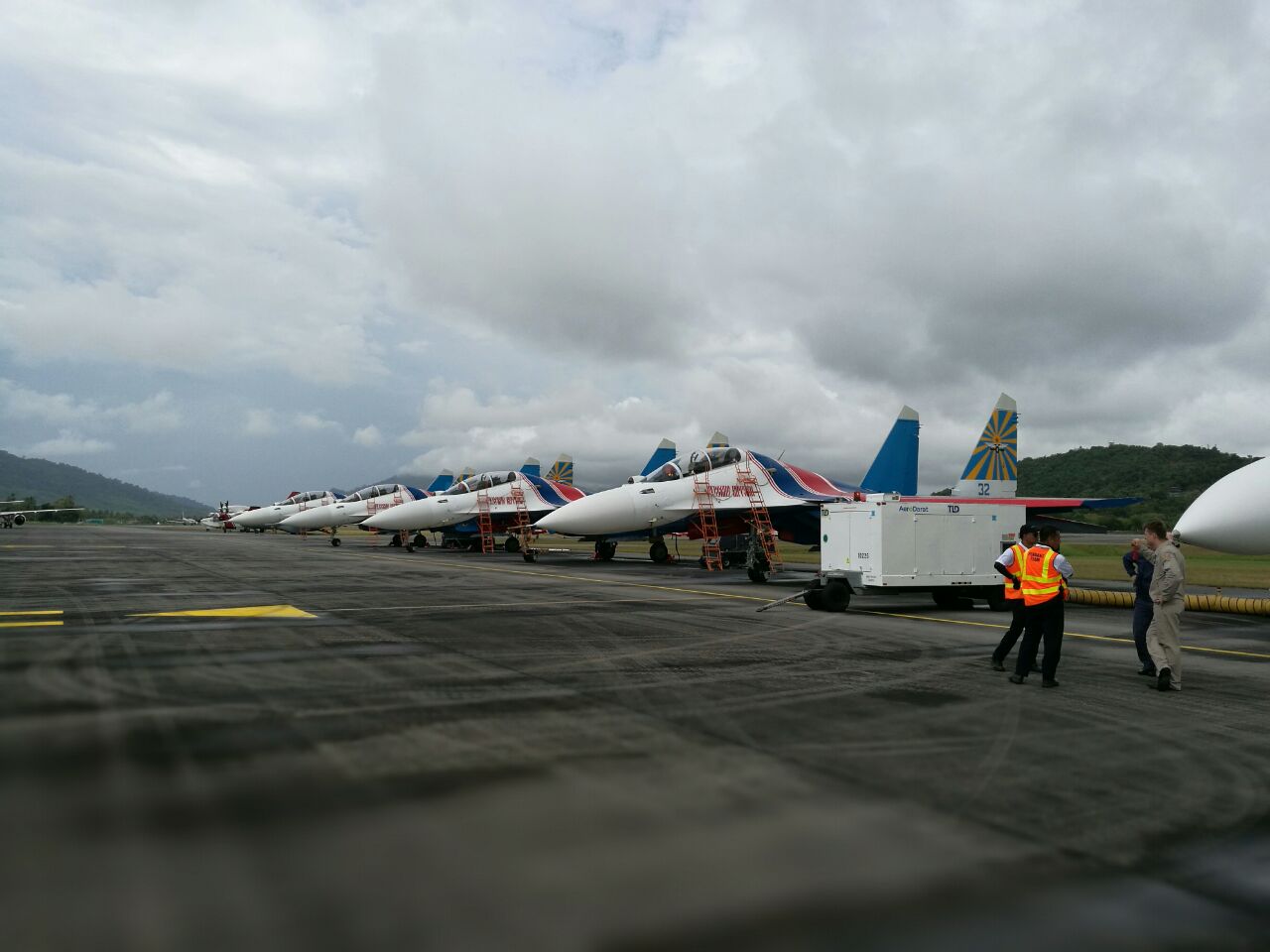 Sukhoi Su-30SMs of the Russian Knights at the Langkawi International Airport