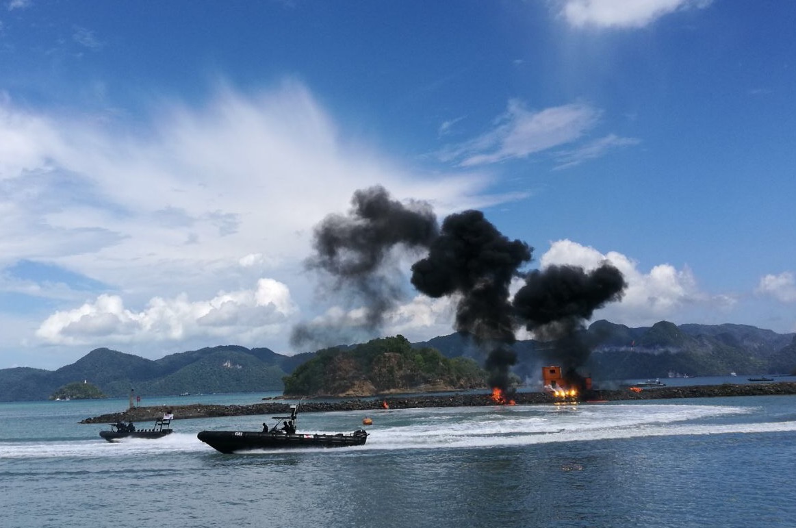 Demonstration by the Royal Malaysian Navy’s special forces, the Marine Operations Force of the Royal Malaysian Police, the Malaysian Maritime Enforcement Agency and the Marine Department performs a demonstration