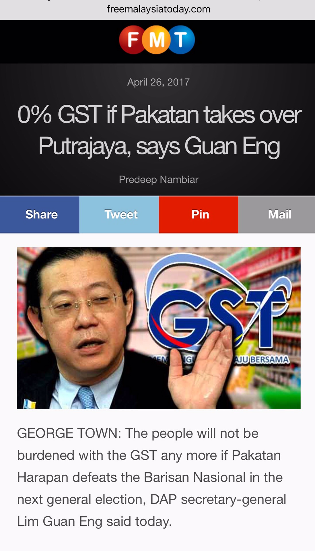 After Nurul Izzah announced that the GST is to remain if Pakatan comes into power, Penang’s charged-with-corruption leader Lim Guan Eng aka Tokong has corrected Nurul Izzah’s statement by saying the GST will be zero-rated for all.
