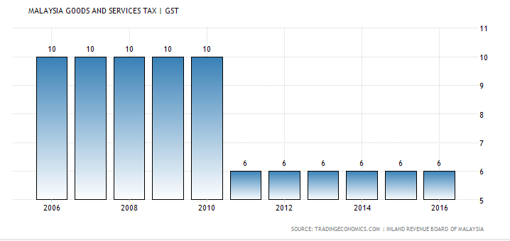This is also helped by the fact that sales tax has gone down from the 10 percent sales tax (and 6 percent service tax) that were not fully remitted to the government due to the suspected underdeclaring of sales and profits, to just 6 percent Goods and Services Tax.