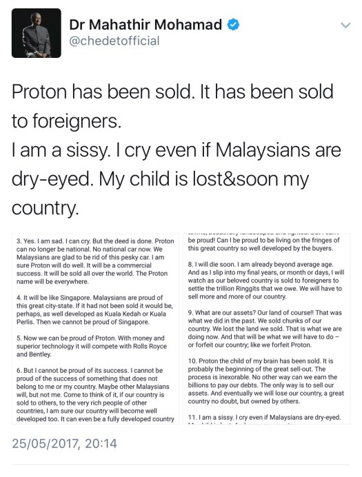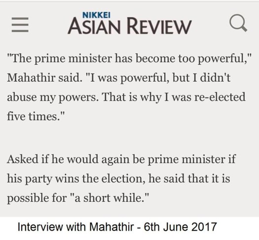 Lalu beliau tubuhkan parti sendiri sambil menjilat ludahnya sendiri agar dapat diterima oleh DAP serta rakan-rakan sekutu mereka. Dan perjuangan Mahathir kini adalah untuk menjatuhkan Najib Razak agar Pakatan dapat berkuasa. Sehubungan itu, Mahathir juga mengangkat dirinya sebagai calon Perdana Menteri Pakatan Harapan dan mengharap agar beliau terlindung dari tindakan undang-undang. Tidak apalah sekiranya DAP memerintah secara proksi dan berpeluang untuk melaksanakan impian Malaysian Malaysia mereka di mana semua rakyat akan diberi hak saksama – termasuk dari segi peluang dan agama.