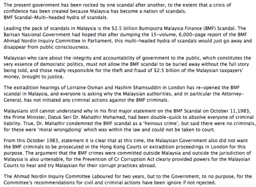 Sejak dari tahun 1980an sendiri kita telah disajikan dengan janji-janji DAP untuk mengheret beliau ke mahkamah untuk membicarakan beliau di atas jenayah-jenayah salahguna kuasa dan penggunaan wang rakyat untuk menyelamatkan perniagaan anak-anak dan kroninya. Kalau tidak, masakan Anwar Ibrahim gunakan isu kronisme dan nepotisme untuk menjatuhkan beliau dari takhta UMNO pada tahun 1998?