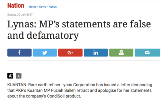 After a four-year hiatus, Kuantan MP Fuziah Salleh is back slandering LYNAS. The LYNAS issue went quiet almost immediately after the last general elections. Expect more demonstrations in the run-up to the next elections.