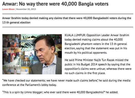 And in an about turn, master liar Anwar said he never made claims that there were 40,000 Bangladeshis who voted during GE13.