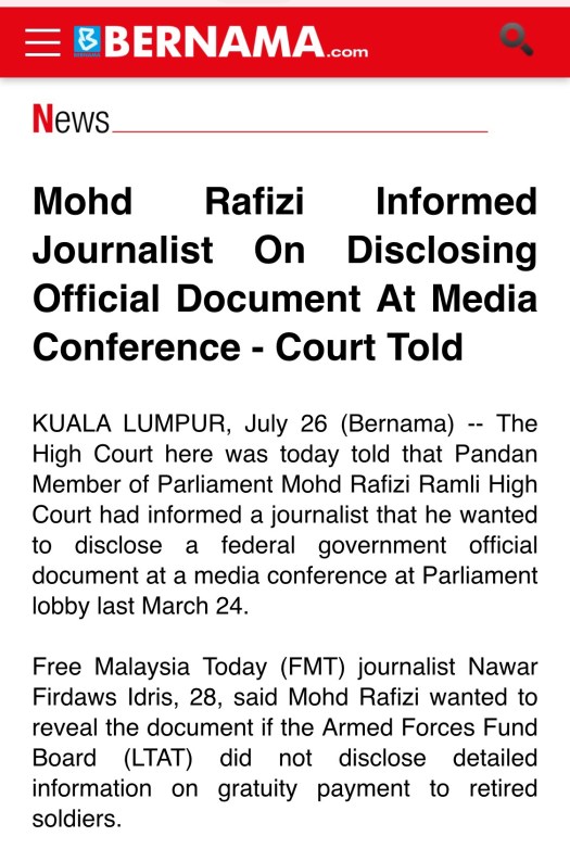 Rafizi kini sedang dibicarakan kerana menggunakan dokumen rasmi untuk menyebarkan fitnah terhadap Lembaga Tabung Angkatan Tentera walaupun sebagai Ahli Parlimen beliau telah mengangkat sumpah untuk mempertahankan rahsia negara.