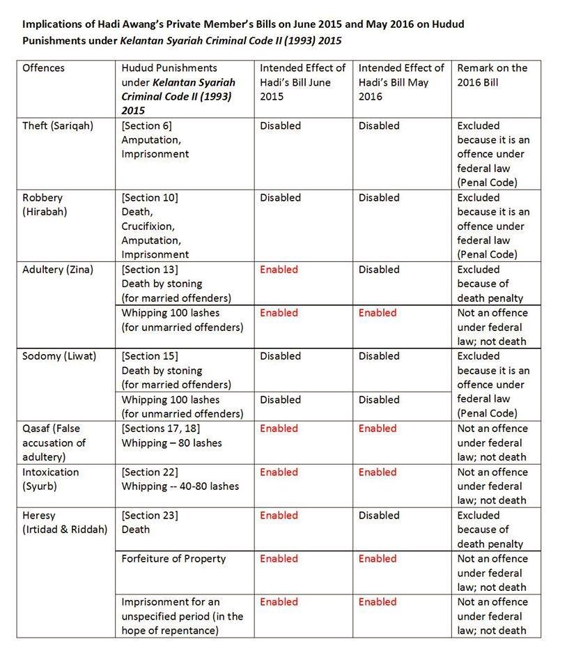 Only the ones in red (Enabled) are the ones Hadi Awang could hope to propose in his Private Bill.