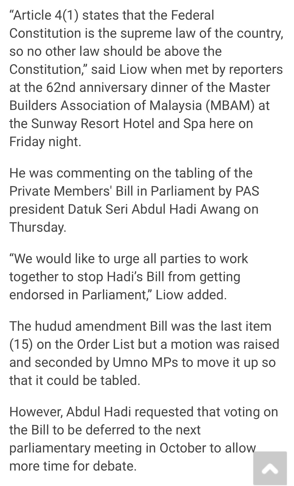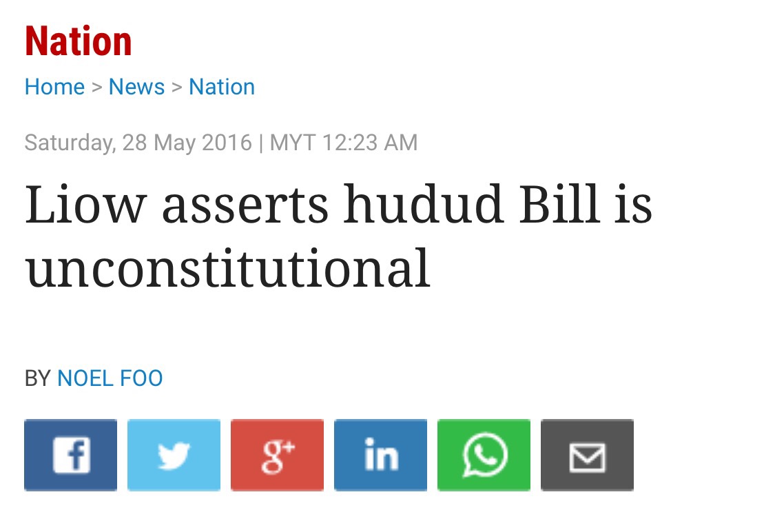 A report by The Star quoting Liow as saying the tabling of Hudud is unconstitutional “Unconstitutional”