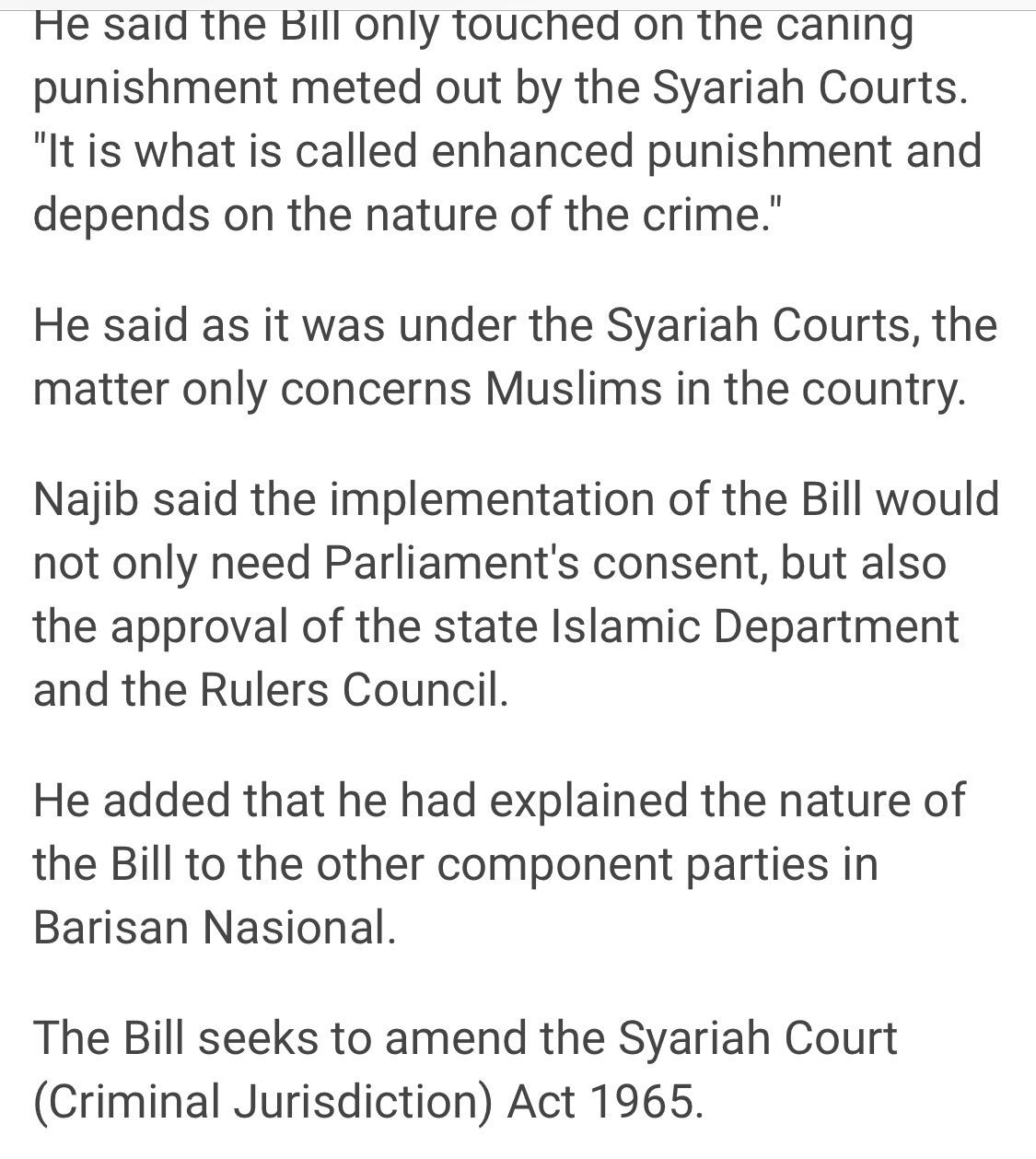 For the benefit of the rest, the bill seeks to enhance the Syariah Court (Criminal Jurisdiction) Act, 1965; a law that is prescribed to Muslims only!
