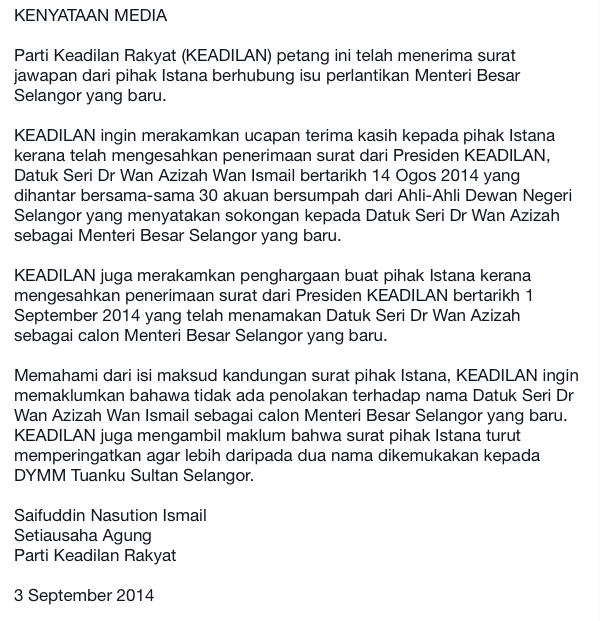 This evening started off with a communiqué from PKR’s Secretary-General: