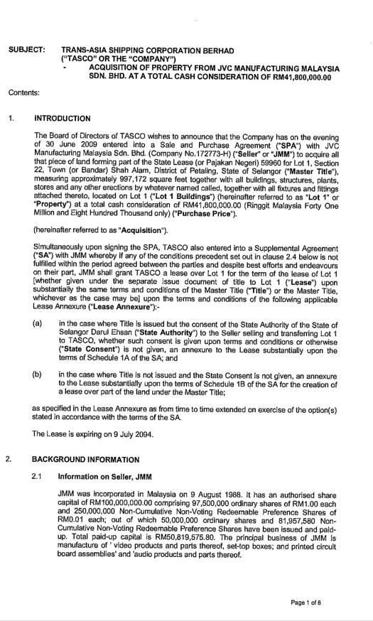 Now it seems that TASCO had come into a sales and purchase agreement with JVC Manufacturing Malaysia Sdm Bhd for the purchase of the said property in 2009. This is a year after Pakatan Rakyat took over the state from Barisan Nasional. Six years on, it seems as if the Selangor SEDC had done nothing to persuade JVC to maintain a plant in Selangor. Why so?