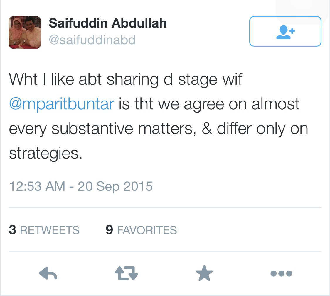 This was what Saifuddin Abdullah had tweeted earlier: