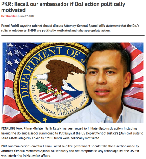 This MP is from the very same Pakatan coalition that the US Department of Justice’s suit on 1MDB-related individuals and companies are not politically-motivated because it would hit the Barisan Nasional hard, but argue that the US State Department’s TIP report as politically-driven instead because it does no good to the Pakatan’s aimless struggle.