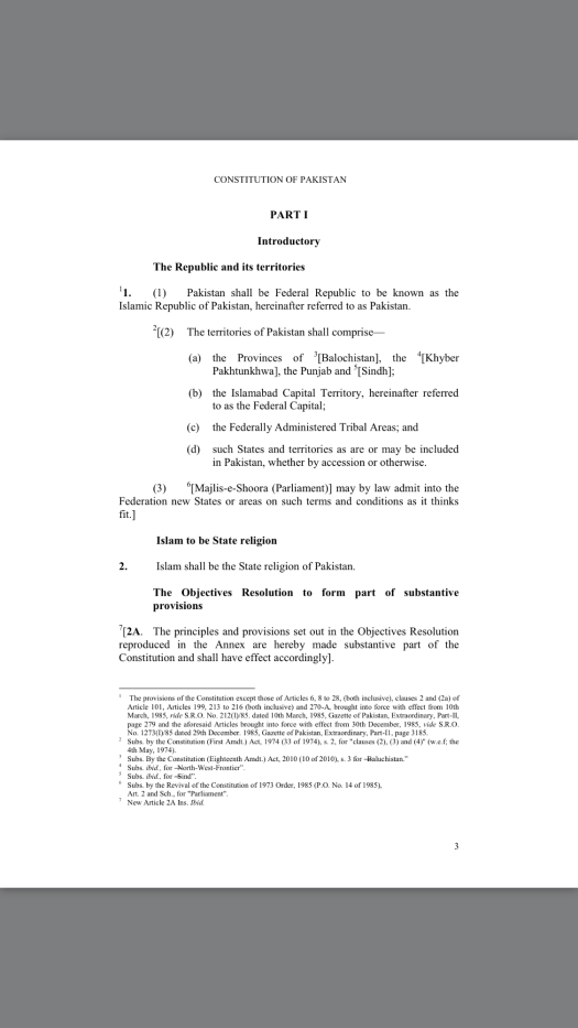 Checkout how Article 2 of Pakistan’s Constitution differs greatly from Article 3 of ours: