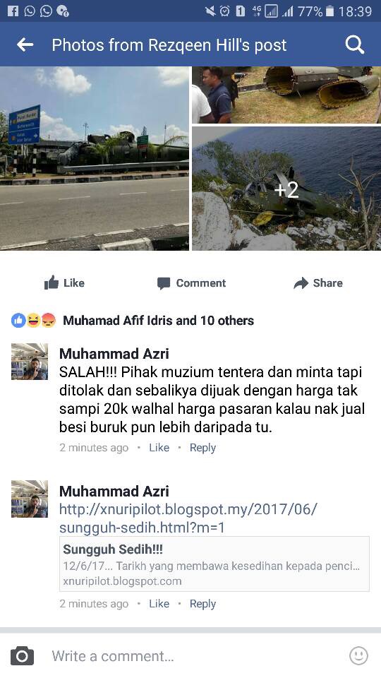 Begitulah hakikatnya sekarang. Yang tidak pernah mengalami dunia ketenteraan yang begitu galak berkata-kata mengenai hal-ehwal ketenteraan sehingga mengajak rakyat berasa tidak puas hati dengan Angkatan Tentera Malaysia sedangkan tidak memahami proses pelupusan aset. Pesawat Nuri masih banyak yang berkhidmat dalam perkhidmatan Tentera Udara DiRaja Malaysia dan Tentera Darat Malaysia. Tunggu sahajalah satu hari nanti apabila kesemuanya tidak lagi berkhidmat untuk ATM. Banyak nanti bahan pameran. Cuma dikhuatirkan muzium yang tidak mencukupi