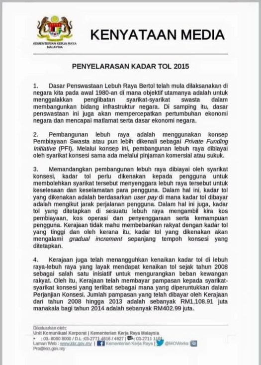 Although the Second Finance Minister said in September that the Finance Ministry would first and foremost get some clarification from Maju Holdings on how they plan to execute the no-toll-hike deal before deciding whether or not to allow the deal to happen, I can bet my bottom dollar that at the time of writing this post, they have not met.
