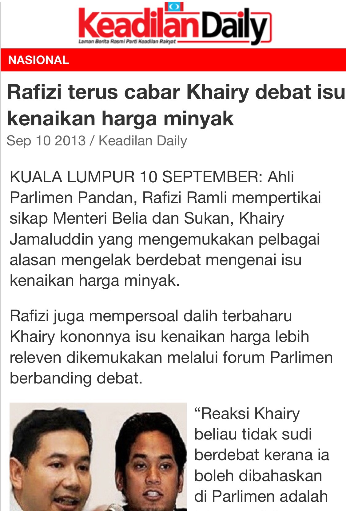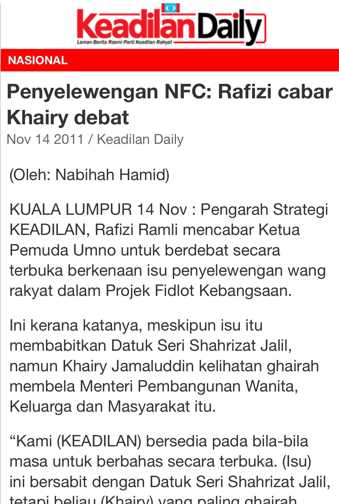 Namun, Artikel 48(1)(e) Perlembagaan Persekutuan jelas menyebut mana-mana orang yang dihukum dengan pemenjaraan selama tempoh tidak kurang daripada satu tahun atau denda tidak kurang daripada dua ribu ringgit dan dia tidak mendapat pengampunan bebas adalah tidak layak untuk menjadi seorang Ahli Parlimen.