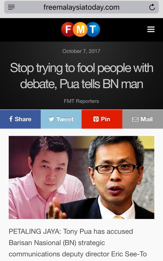 Sekarang kita lihat pula baju T yang dipakai oleh Tony Pua dalam satu videonya: