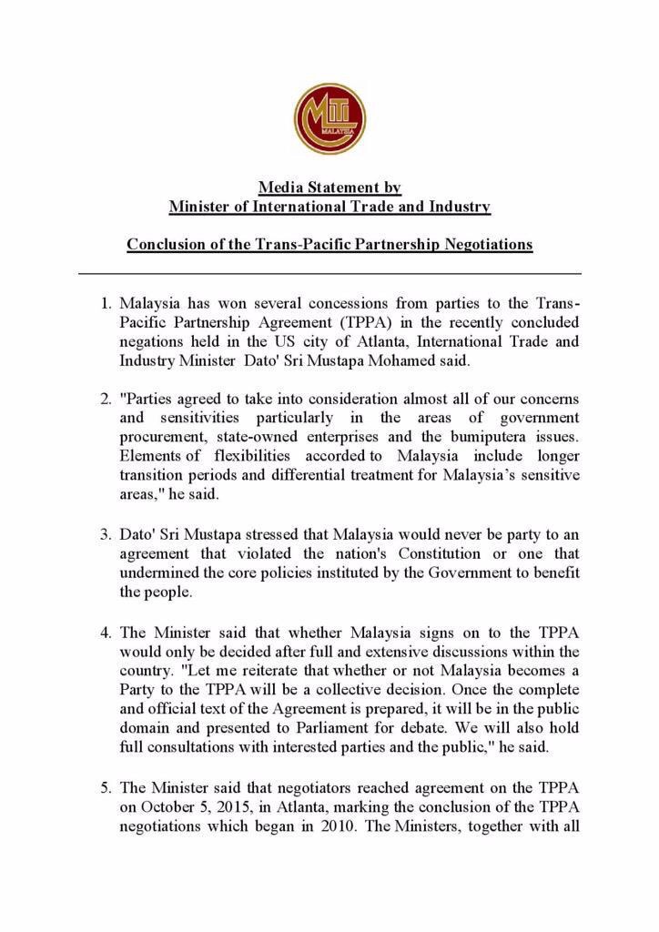 Also, US is not our only trading partner and the performance of our Ringgit is not measured against US dollars alone.